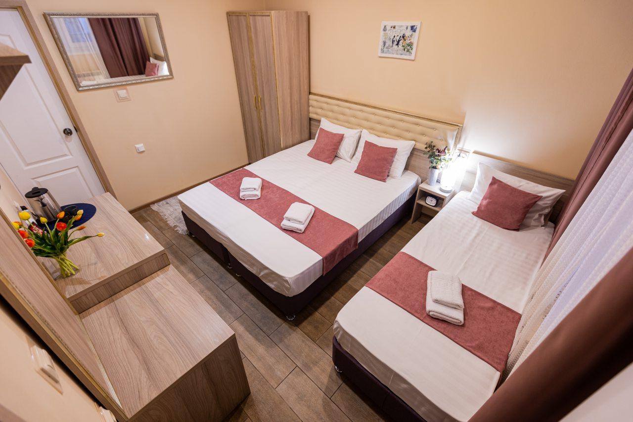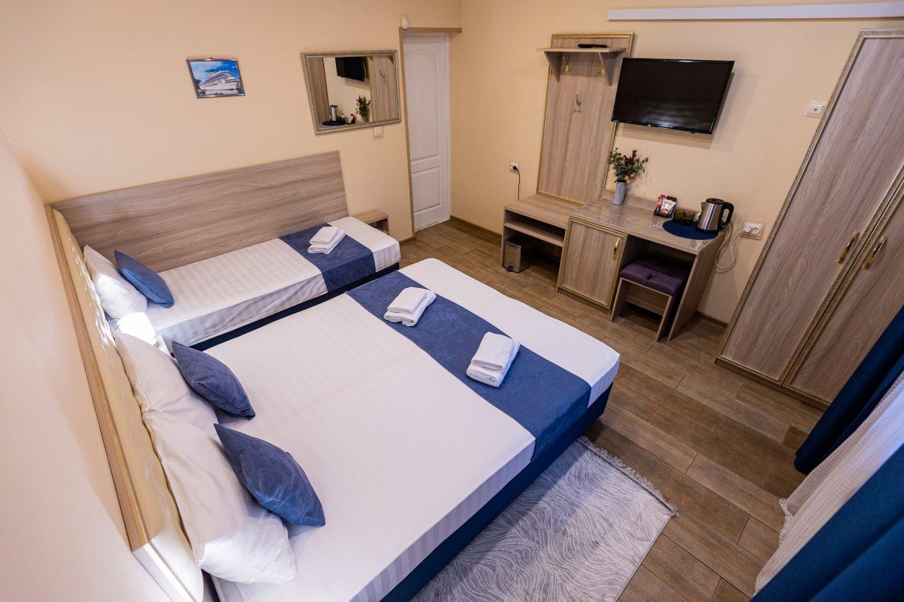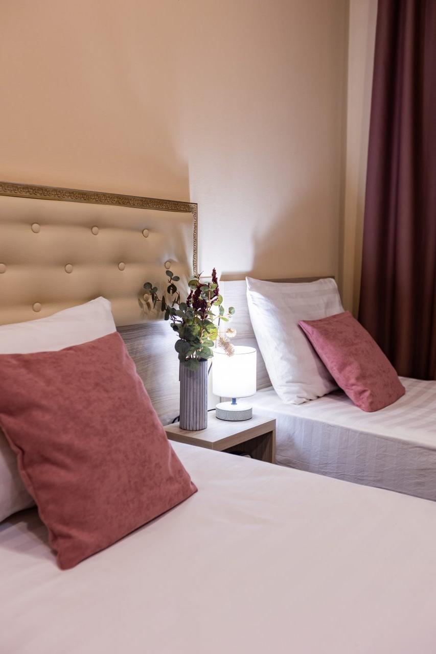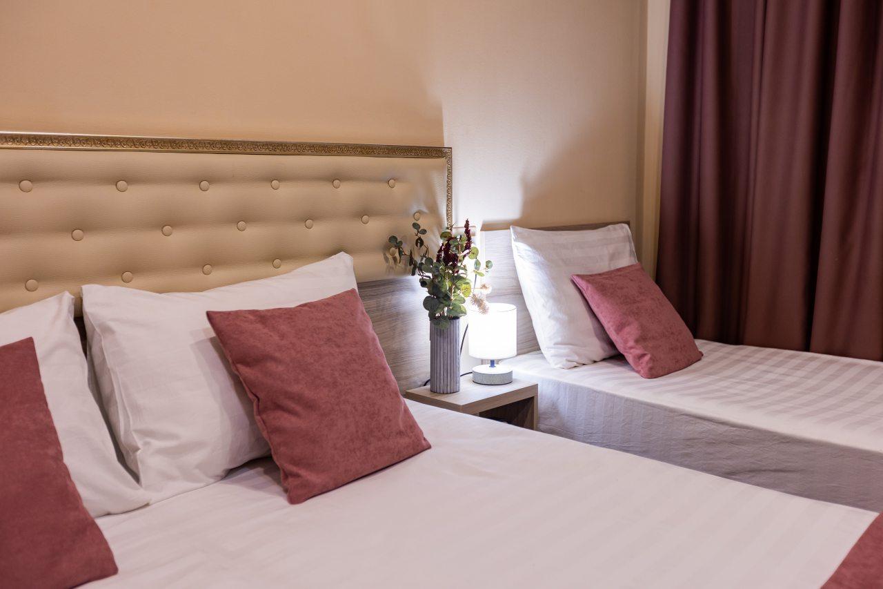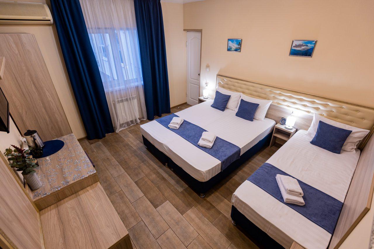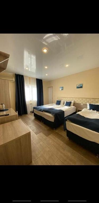 Отдыхали семьей с двумя детьми - остались в полном восторге! Для нашего удобства выделили смежные комнаты это было очень удобно. Дети были в восторге от близости к морю - утром побежали купаться, днем пришли отдохнуть, вечером снова на пляж. На территории есть место где поиграть в мяч. Персонал внимательный - помогли с коляской, подсказали детское меню в ближайших кафе. Постельное белье приятное на ощупь, кондиционер работает тихо. Особенно понравилось, что в есть розетки у каждой кровати - удобно заряжать гаджеты. Рекомендую для семейного отдыха!