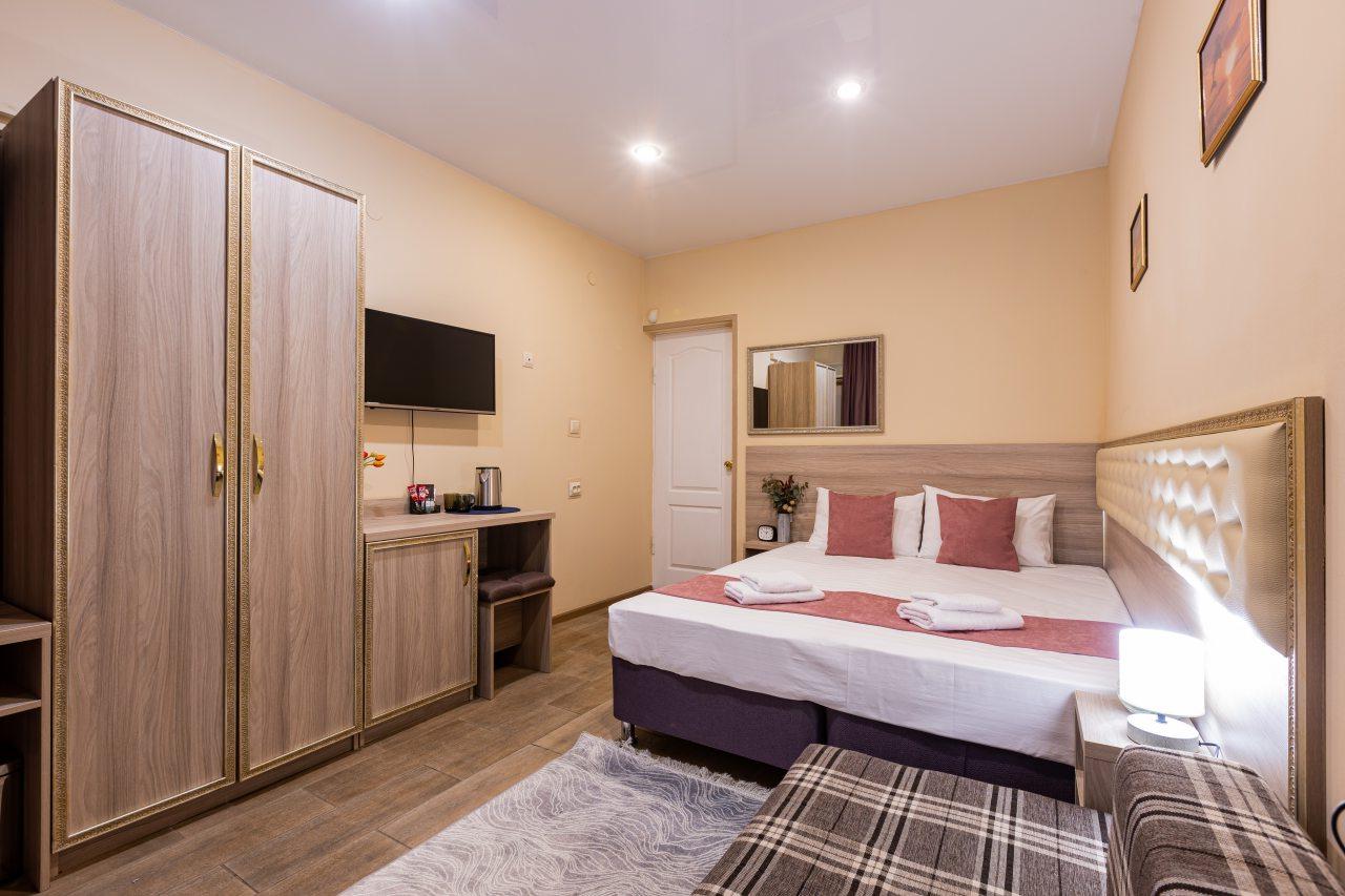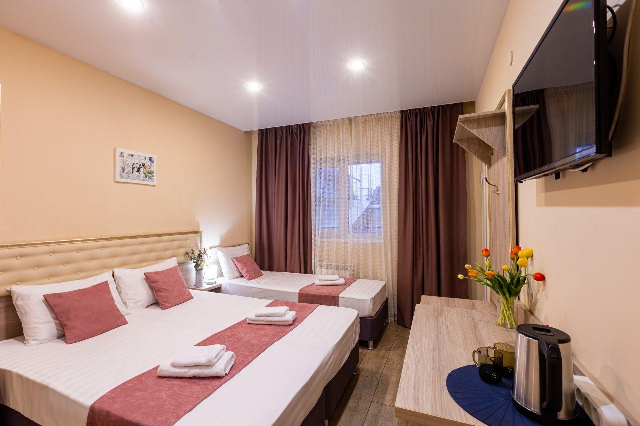 Выбирали бюджетный вариант для отдыха и не ожидали такого комфорта за эти деньги! Комната с двуспальной кроватью оказался просторнее, чем мы думали. Удобная планировка - есть где разложить вещи. Порадовало наличие холодильника и чайника - утром можно спокойно попить кофе, не выходя из комнаты. Территория ухоженная, есть место где посидеть вечером. До центра Адлера пешком около 20 минут приятной прогулки. Отдельное спасибо администратору Марине за душевный прием и полезные советы!